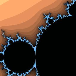 | Diese Bilderfolge veranschaulicht die Selbstähnlichkeit von Fraktalen am